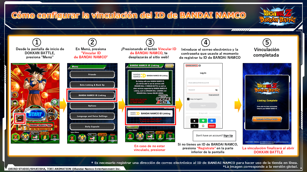 Paso 1: Vincular una cuenta del juego con Bandai Namco ID