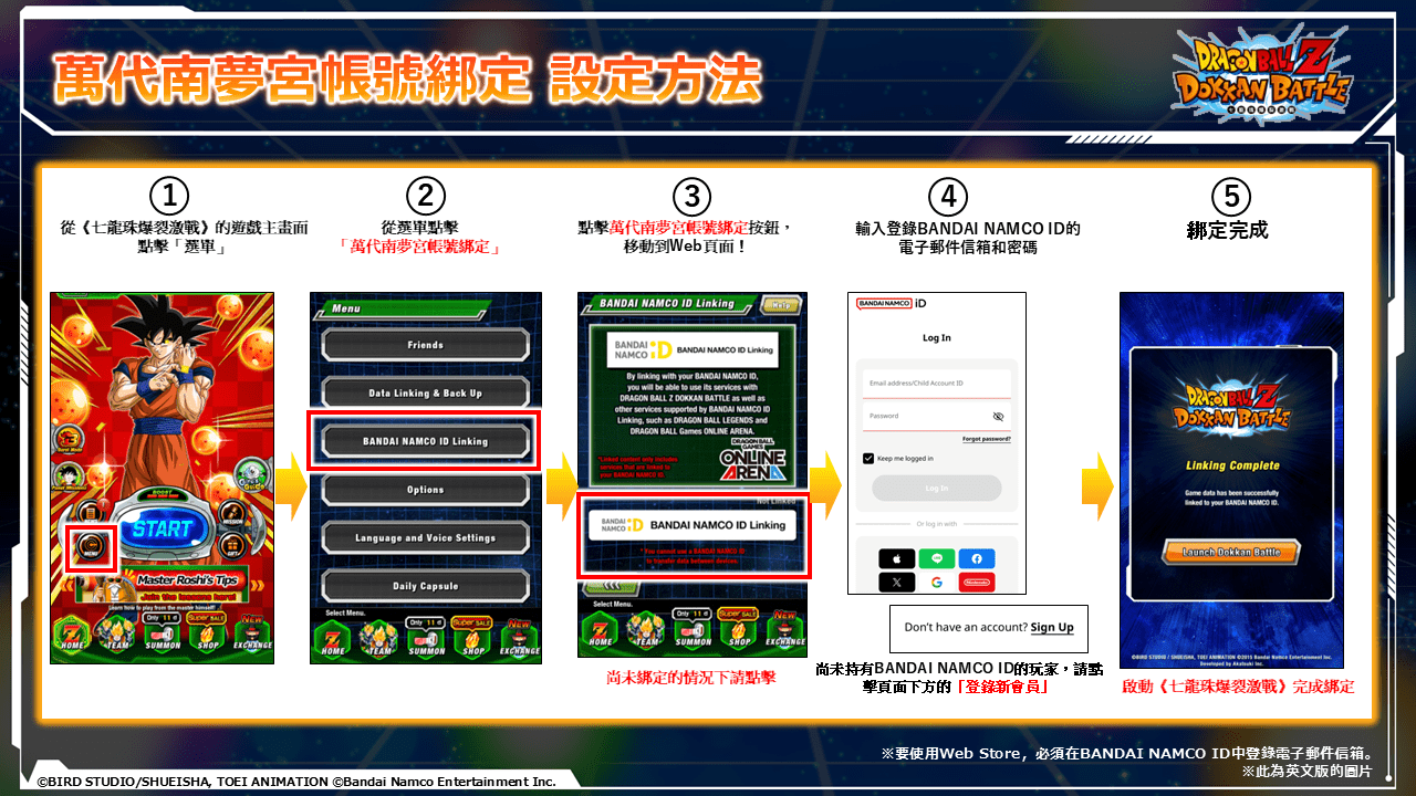 步驟1:將遊戲帳號與Bandai Namco ID連動
