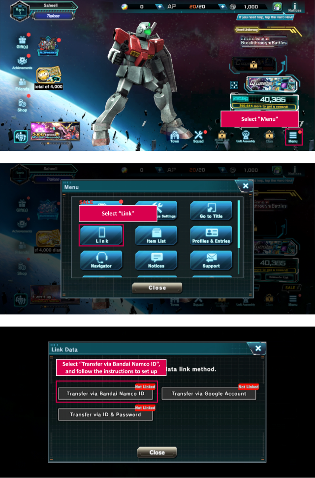 Step 1: Link your game account to your Bandai Namco ID.
