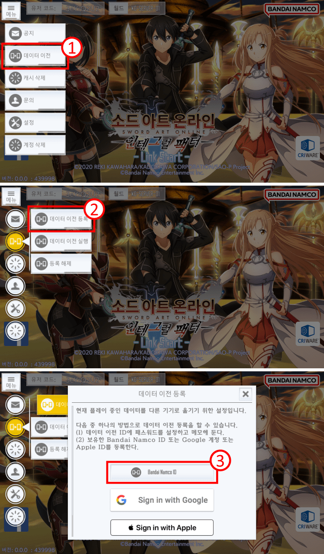 순서 1: 게임 계정을 Bandai Namco ID와 연동