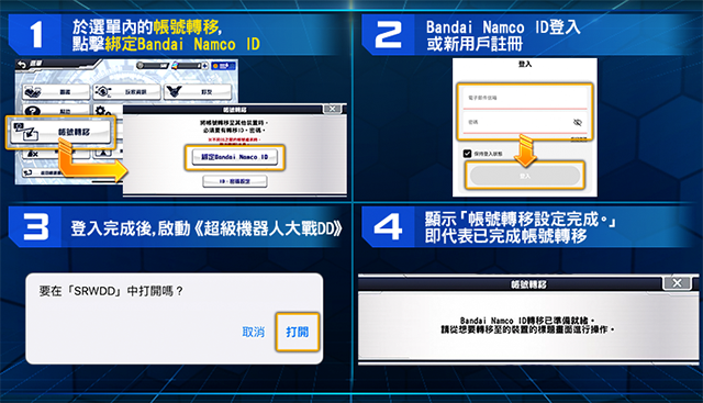步驟1:將遊戲帳號與Bandai Namco ID連動