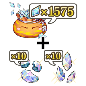 可獲得1575個魔晶石,以及極★5契約石碎片10個、極★5記憶石碎片10個。