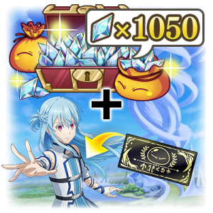 可獲得1050個魔晶石,以及內含〔閃光〕亞絲娜 交換結晶4個、內含〔閃光〕亞絲娜 刀劍神域 合作 Part.2 極★5機率30% 保證★5戰鬥招募券2張。