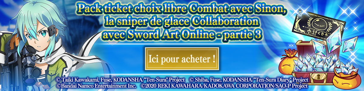 Pack ticket de recrutement 5★ EX garanti Collaboration avec Sword Art Online - partie 3 taux d'obtention Sinon, la sniper de glace 15%