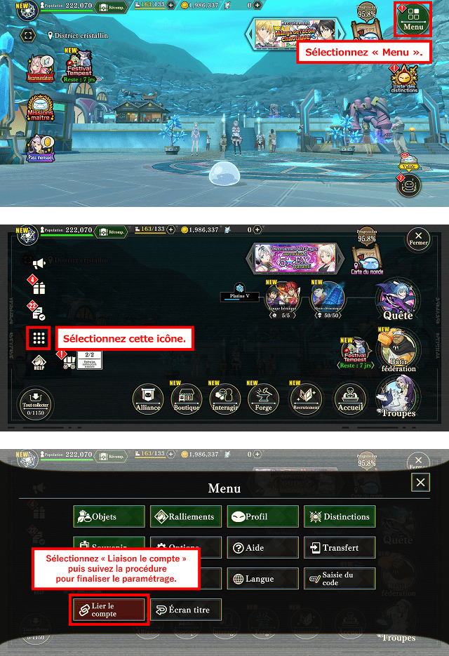 * Veuillez noter que les Magicristaux achetés ou acquis par l'intermédiaire de ce service ainsi que les Magicristaux en votre possession seront perdus lors du transfert des données de jeu vers une autre plateforme.