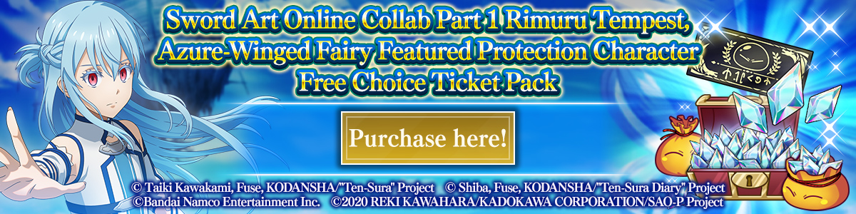 You can obtain Rimuru Tempest, Azure-Winged Fairy Featured Protection Character Free Choice Ticket x1 and Magicrystal x1,050.