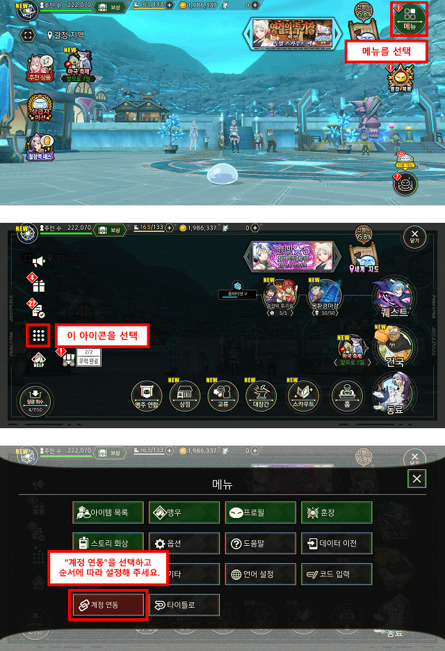 순서 1: 게임 계정을 Bandai Namco ID와 연동