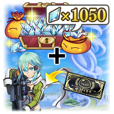 可獲得1050個魔晶石,以及內含〔閃光〕亞絲娜 交換結晶4個、內含〔閃光〕亞絲娜 刀劍神域 合作 Part.2 極★5機率30% 保證★5戰鬥招募券2張。